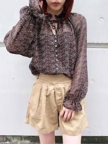 90‘s Floral pattern velour sheer blouse