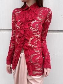 90‘s Red lace ruffle blouse