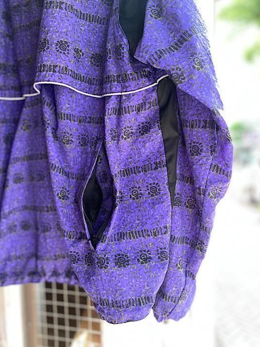 【MATERIAL】 NYLON (表記なし) 【COLOR】 PUPLE / BLACK 【 SIZE 】 表記なし(L相当) 肩幅 59cm / 身幅 61cm 袖丈 62cm / 着丈 74cm ※ 採寸は念入りに行っておりますが、平置きによる採寸の為、数字に若干のずれが生じることもございます。何卒ご了承下さい。 モデル身長 / 172 cm 【CONDITION】 特に目立ったダメージや汚れはございません。全体的に良いコンディションです。 ◆コンディションにつきまして◆ 商品は比較的状態の綺麗なものを厳選しておりますが、アイテムの年代や素材・生地感等によっては状態判断の受け取り方に個人差が生じてしまうため、一括りにダメージや汚れといっても規模の大小等明確な区別による言及ができない面がございます。 傷、汚れ等につきましては、一見してわかるようなものや着用に際し著しく目立つものは説明文や画像等でご紹介しておりますが、VINTAGE / USEDの範囲内と判断した細かなものにつきましては、説明を省いている場合がございます。予めご了承ください。 新品にはない特有の使用感や経年変化を含めた上で、VINTAGEの魅力をお楽しみ頂ければと思います。 ご不明点、ご心配な点はご注文前にお気軽にお問い合わせください。 ※代引き決済をご希望のお客様へ※ 3/16より全面的に不可とさせて頂いております。どうしても代引きでのご注文をご希望の場合は大変お手数ですが、当店営業時間内にお電話にてご連絡をお願い致します。 尚、発送日翌日より原則4日以内のお受け取りをお願いしております。 ご注文時にお客様が確実にお受け取り可能なお日にち、お時間をご指定の上、ご注文頂きますようお願い申し上げます。尚、発送日のご指定は承っておりませんのでご了承ください。 【発送につきまして】 当日16:00までのご注文→当日発送、翌日配達可能です。 16:00以降のご注文→翌日発送、翌々日配達可能です。 ※お客様の配達地域によっては最短で中1日での到着となります事もございます。 予めご理解のほど宜しくお願い致します。 【※クレジットカード決済時のエラーにつきまして】 「Instagram経由にて」リンクより商品を注文されます際に決済エラーとなってしまう事例がございます。(Instagram側の問題とのことです)その場合は大変お手数ですが、今一度Safariで開き直してから決済手続きを行なっていただきますようお願い申し上げます。