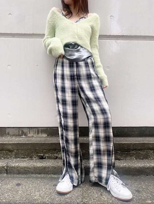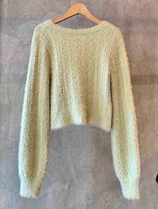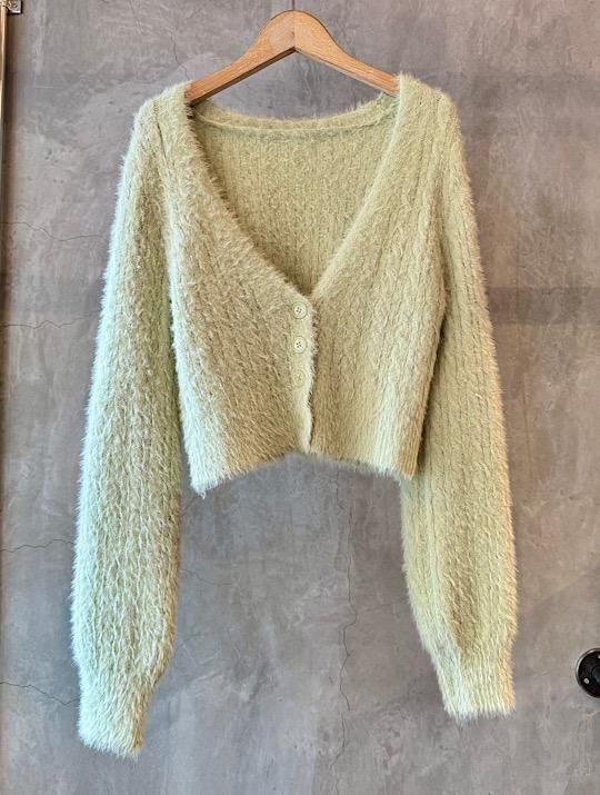 Home » Lady's » knits » 00‘s Pale green shaggy knit cropped cardigan