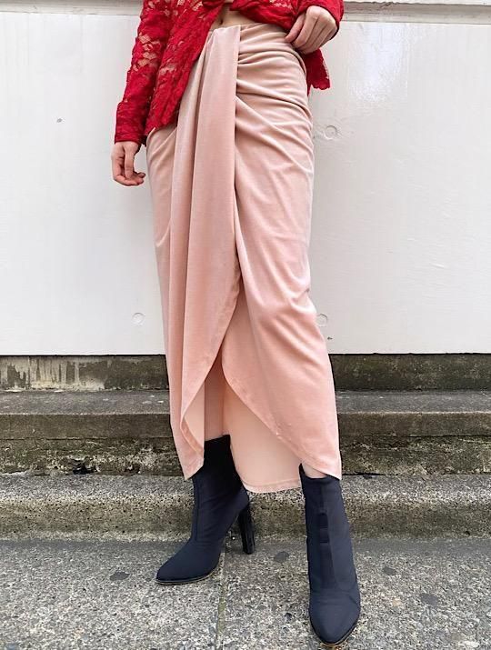 Home » Lady's » Skirts » 00‘s Dusty pink velour draped skirt