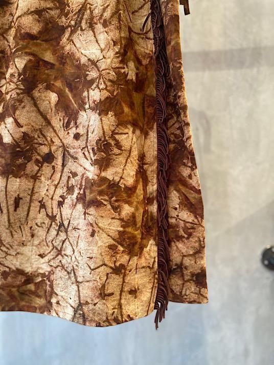 【MATERIAL】 POLYESTER (表記なし) 【 SIZE 】 表記 なし(M〜L相当) ウエスト 66cm〜(FREE) ヒップ FREE 着丈 84cm ※ 採寸は念入りに行っておりますが、平置きによる採寸の為、数字に若干のずれが生じることもございます。何卒ご了承下さい。 【CONDITION】 特に目立ったダメージや汚れはございません。 良いヴィンテージコンディションと言えます。 ※usedのため多少の使用感はございますが、比較的状態の良い商品となります。商品画像参照 モデル身長 / 165cm ◆コンディションにつきまして◆ 商品は比較的状態の綺麗なものを厳選しておりますが、アイテムの年代や素材・生地感等によっては状態判断の受け取り方に個人差が生じてしまうため、一括りにダメージや汚れといっても規模の大小等明確な区別による言及ができない面がございます。 傷、汚れ等につきましては、一見してわかるようなものや着用に際し著しく目立つものは説明文や画像等でご紹介しておりますが、VINTAGE / USEDの範囲内と判断した細かなものにつきましては、説明を省いている場合がございます。予めご了承ください。 新品にはない特有の使用感や経年変化を含めた上で、VINTAGEの魅力をお楽しみ頂ければと思います。 ご不明点、ご心配な点はご注文前にお気軽にお問い合わせください。 ※代引き決済をご希望のお客様へ※ 3/16より全面的に不可とさせて頂いております。どうしても代引きでのご注文をご希望の場合は大変お手数ですが、当店営業時間内にお電話にてご連絡をお願い致します。 尚、発送日翌日より原則4日以内のお受け取りをお願いしております。 ご注文時にお客様が確実にお受け取り可能なお日にち、お時間をご指定の上、ご注文頂きますようお願い申し上げます。尚、発送日のご指定は承っておりませんのでご了承ください。 【発送につきまして】 当日16:00までのご注文→当日発送、翌日配達可能です。 16:00以降のご注文→翌日発送、翌々日配達可能です。 ※お客様の配達地域によっては最短で中1日での到着となります事もございます。 予めご理解のほど宜しくお願い致します。 【※クレジットカード決済時のエラーにつきまして】 「Instagram経由にて」リンクより商品を注文されます際に決済エラーとなってしまう事例がございます。(Instagram側の問題とのことです)その場合は大変お手数ですが、今一度Safariで開き直してから決済手続きを行なっていただきますようお願い申し上げます。