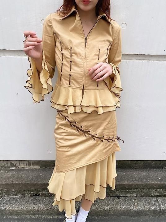 Home » Lady's » Jumpsuits » Lace up design jacket & skirt setup