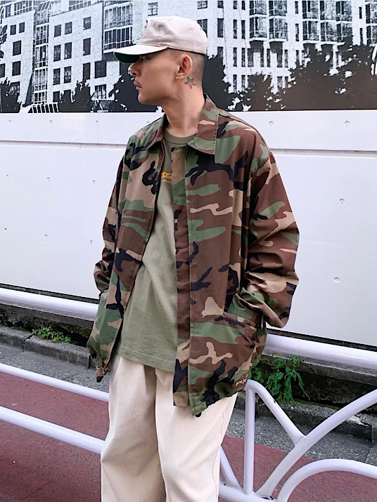 90年代のニューヨーク・グラフィティシーンを体現した “Project Dragon” によるウッドランドカモジップジャケット。 STASHとFUTURA2000が主宰したデザインスタジオ 「BSF(Blue / Stash / Futura)」期のプロダクトで、ブランド特有のアンダーグラウンドな空気感を纏った一着です。 素材は軽量かつ耐久性に優れたリップストップコットン×ナイロン。裾に配された “project dragon” ロゴ刺繍や、内側タグに見られる “B/S/F” アイコンが、NYストリート黎明期のカルチャーを色濃く物語ります。 当時、Project Dragon → RECON へと続く系譜の中で生まれた貴重なアーカイブピース。 ミリタリーの無骨さとアート的なグラフィティ感覚が融合した、90’sストリートカルチャーを象徴する一着です。 【MATERIAL】 COTTON 50% NYLON 50% 【COLOR】 WOODLAND CAMOUFLAGE 【 SIZE 】 L表記 肩幅 54cm / 身幅 67cm 袖丈 63cm / 着丈 77cm ※ 採寸は念入りに行っておりますが、平置きによる採寸の為、数字に若干のずれが生じることもございます。何卒ご了承下さい。 モデル身長172cm 【CONDITION】 特に目に付くダメージや汚れなく、年代を考慮すると非常に良いヴィンテージコンディションと言えます。 ◆コンディションにつきまして◆ 商品は比較的状態の綺麗なものを厳選しておりますが、アイテムの年代や素材・生地感等によっては状態判断の受け取り方に個人差が生じてしまうため、一括りにダメージや汚れといっても規模の大小等明確な区別による言及ができない面がございます。 傷、汚れ等につきましては、一見してわかるようなものや着用に際し著しく目立つものは説明文や画像等でご紹介しておりますが、VINTAGE / USEDの範囲内と判断した細かなものにつきましては、説明を省いている場合がございます。予めご了承ください。 新品にはない特有の使用感や経年変化を含めた上で、VINTAGEの魅力をお楽しみ頂ければと思います。 ご不明点、ご心配な点はご注文前にお気軽にお問い合わせください。 ※代引き決済をご希望のお客様へ※ 3/16より全面的に不可とさせて頂いております。どうしても代引きでのご注文をご希望の場合は大変お手数ですが、当店営業時間内にお電話にてご連絡をお願い致します。 尚、発送日翌日より原則4日以内のお受け取りをお願いしております。 ご注文時にお客様が確実にお受け取り可能なお日にち、お時間をご指定の上、ご注文頂きますようお願い申し上げます。尚、発送日のご指定は承っておりませんのでご了承ください。 【発送につきまして】 当日16:00までのご注文→当日発送、翌日配達可能です。 16:00以降のご注文→翌日発送、翌々日配達可能です。 ※お客様の配達地域によっては最短で中1日での到着となります事もございます。 予めご理解のほど宜しくお願い致します。 【※クレジットカード決済時のエラーにつきまして】 「Instagram経由にて」リンクより商品を注文されます際に決済エラーとなってしまう事例がございます。(Instagram側の問題とのことです)その場合は大変お手数ですが、今一度Safariで開き直してから決済手続きを行なっていただきますようお願い申し上げます。