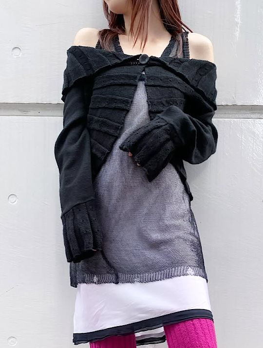 Home » Lady's » knits » 00’s Black 3D knit cropped cardigan